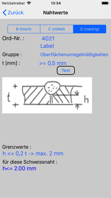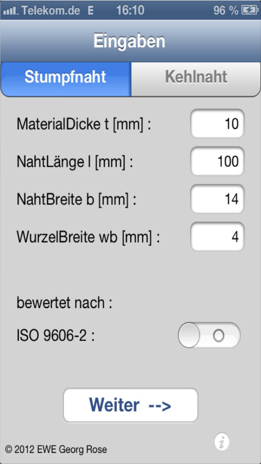 Diese Normwerte für die jeweils zu prüfende Naht zu ermitteln und anzuzeigen ist mittels dieser App schnell erledigt.