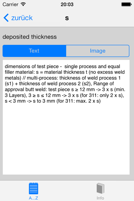 Aus den in einer Prüfbezeichnung vorkommenden Elementen wird eines ausgewählt bzw. über die Suchfunktion ermittelt. Daraufhin wird eine Erläuterung in Textform und/oder eine einfache Skizze zur Veranschaulichung angezeigt.