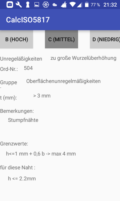 calcISO5817 V 2.1 - App für iPhone und iPad