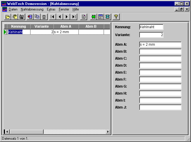 Abbildung 26: Modul Stammdaten - Nahtabmessung