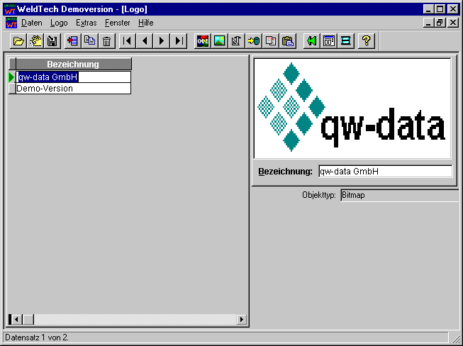 Die große graue Fläche auf der rechten Seite ist ein BLOB-Feld. Mit Doppelklick auf die Fläche starten Sie den OLE-Server. Bei bereits vorhandenen Logo und Firmenzeichen wird durch den Doppelklick auf dieses Feld der Grafikeditor gestartet indem das entsprechende Logo erstellt bzw. bearbeitet wurde. Es können somit auch Änderungen vorgenommen werden (siehe auch Kapitel 3.3.5).