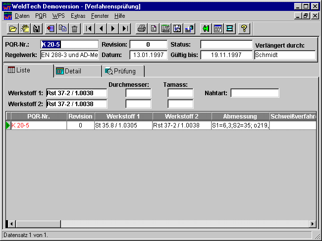 Werkstoffes, der Abmessung und der Nahtart eine Verfahrensprüfung aus